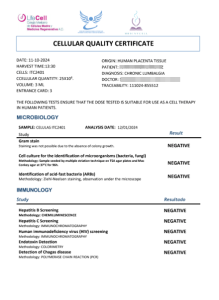 Because we control the entire cultivation process, we guarantee exceptional quality. Specifically, every single patient receives a highly detailed, five-page authenticity certificate . This official document clearly details the exact cell count and vital safety metrics .